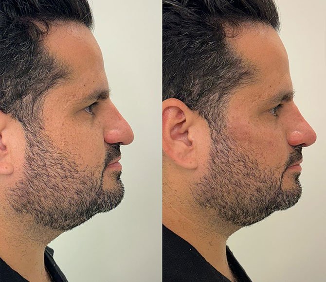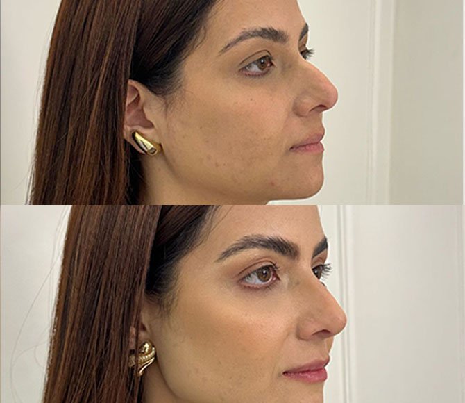 “Meu perfil sempre me incomodou, principalmente o nariz. Fiz rinomodelação e parte da perfiloplastia com preenchimento, e o resultado foi além das minhas expectativas. Meu rosto ficou muito mais harmônico e equilibrado. É impressionante como pequenas mudanças fizeram tanta diferença na minha autoestima.”
